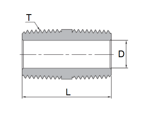 O encaixe de tubo de mamilo próximo possui conexões rosqueadas de tubulação nacional (NPT) masculinas.