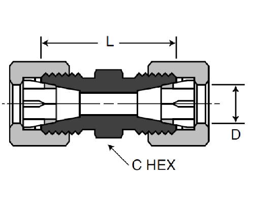 Este é um encaixe de 3/16 "de tubo com uma luva com fenda e uma versão níquel deste produto também está disponível para aplicativos biológicos.